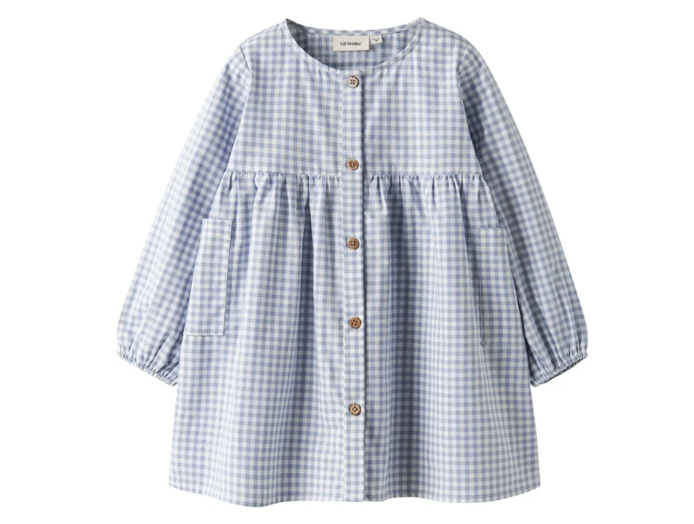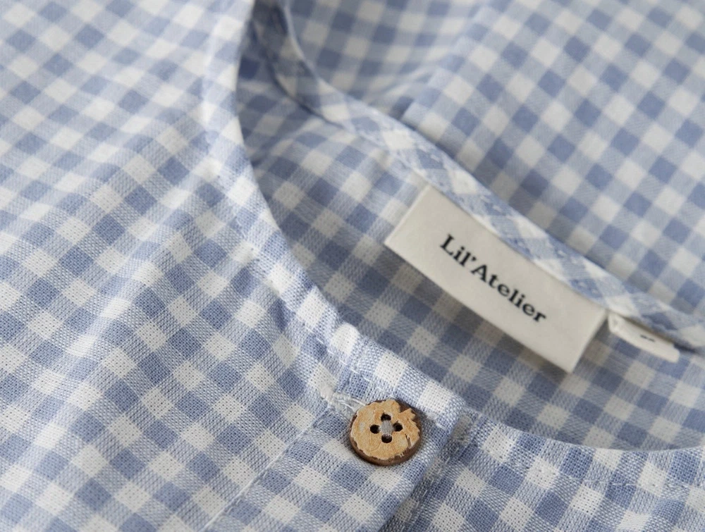 Kjole i lyseblå nuance fra Lil' Atelier med små tern (zen blue).