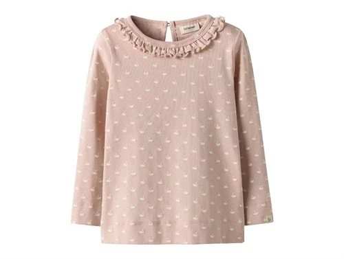 Lil' Atelier langærmet top i lyserød med svaner og flæsekrave