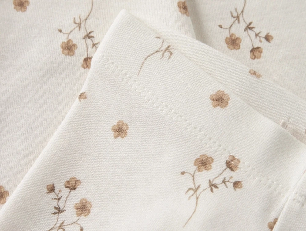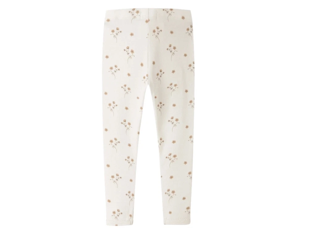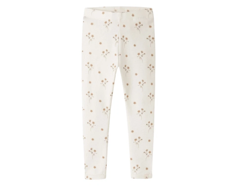 Leggings i råhvid nuance (coconut milk) fra Lil' Atelier med små blomsterprint i varme gyldne toner.