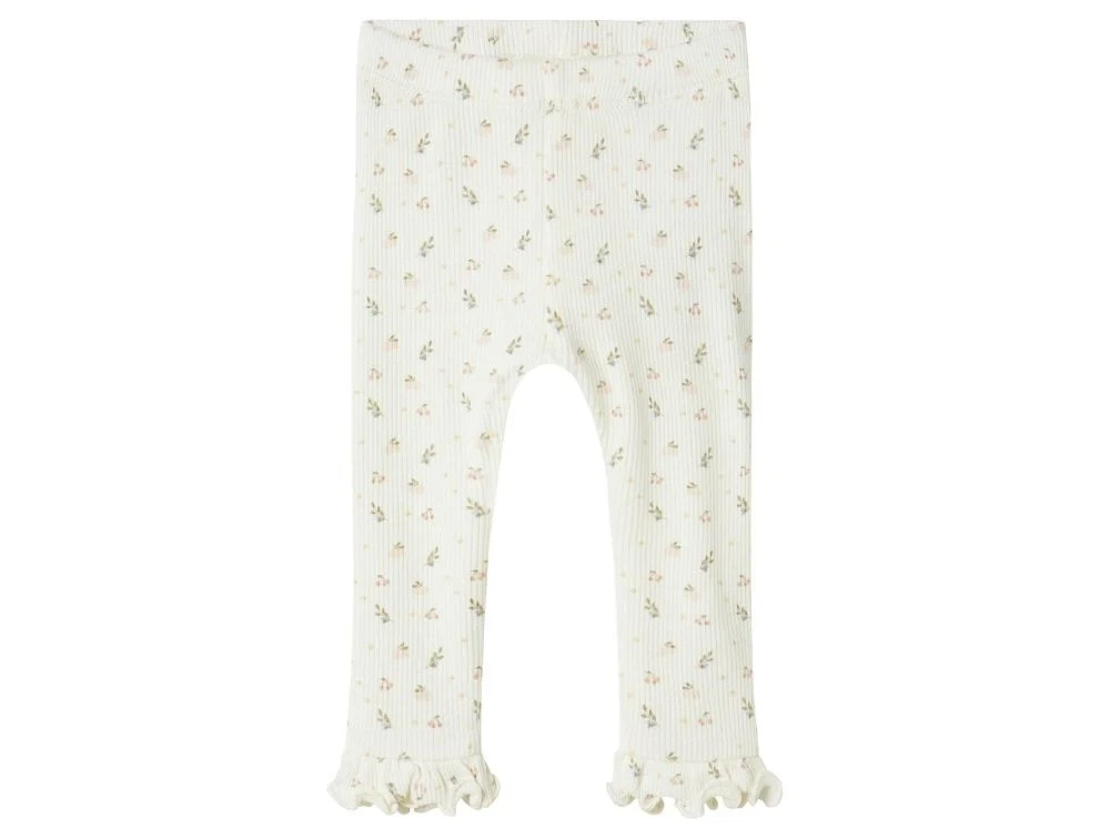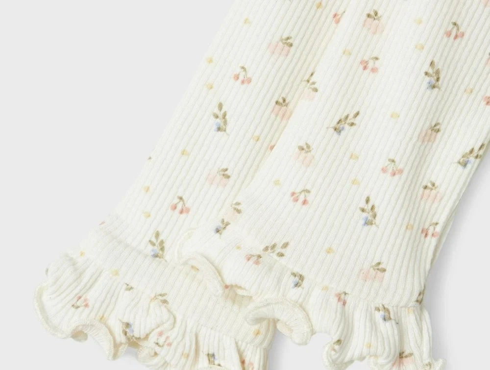 Lil' Atelier leggings coconut milk med kirsebærprint og flæsekant