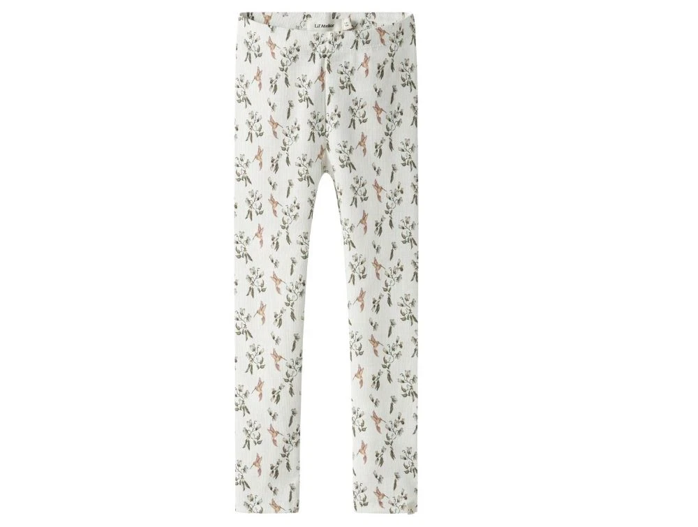 Lil' Atelier leggings coconut milk med kolibriprint og elastik i taljen
