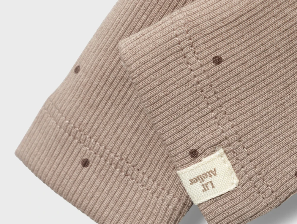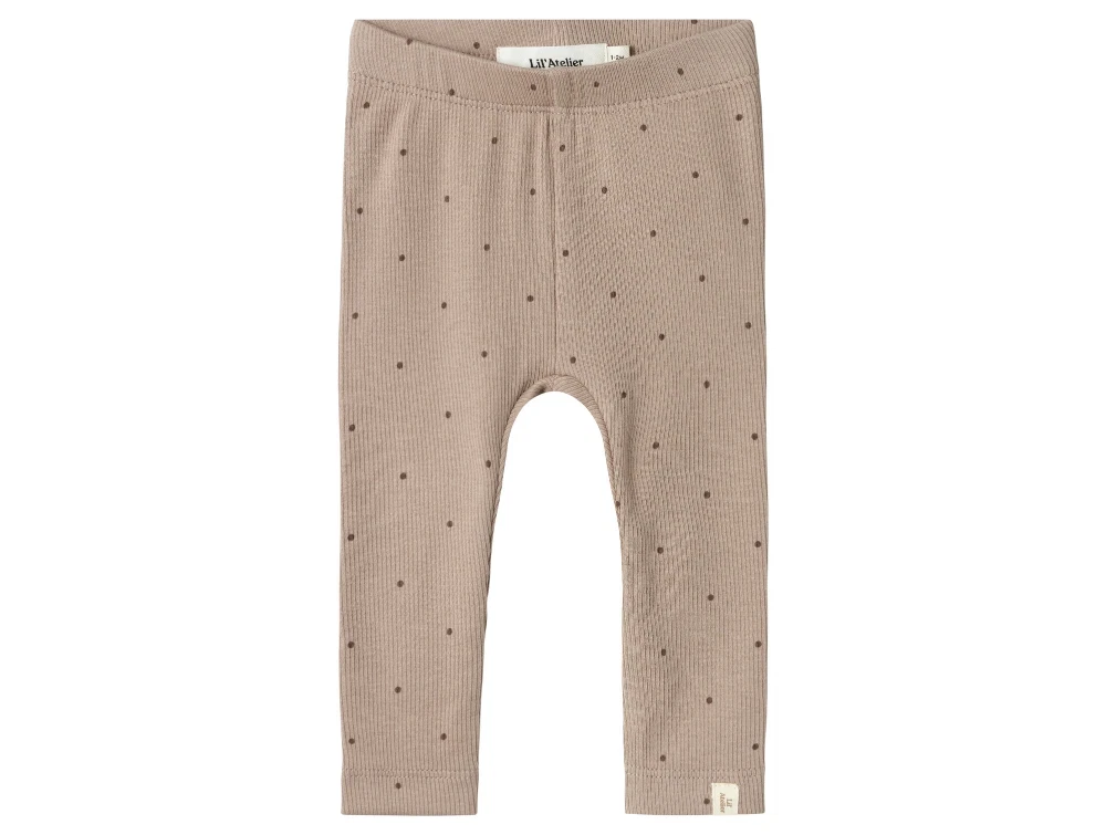 Leggings i støvet rosa nuance fra Lil' Atelier med brune prikker og lille logomærke.