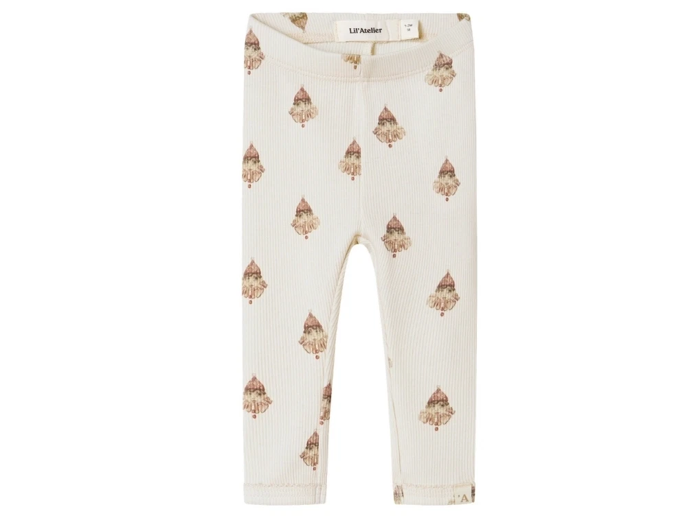 Leggings i beige nuance med klovneprint fra Lil' Atelier. De ribstrikkede leggings har elastik i taljen og en smal pasform, som giver god komfort og bevægelsesfrihed.