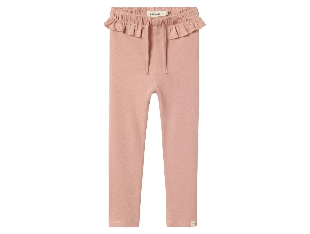 Leggings i misty rose fra Lil' Atelier med flæsekant i livet.