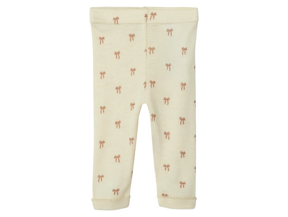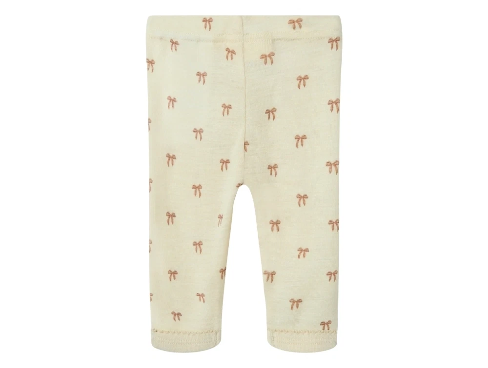 Lil' Atelier leggings i råhvid nuance med sløjfeprint