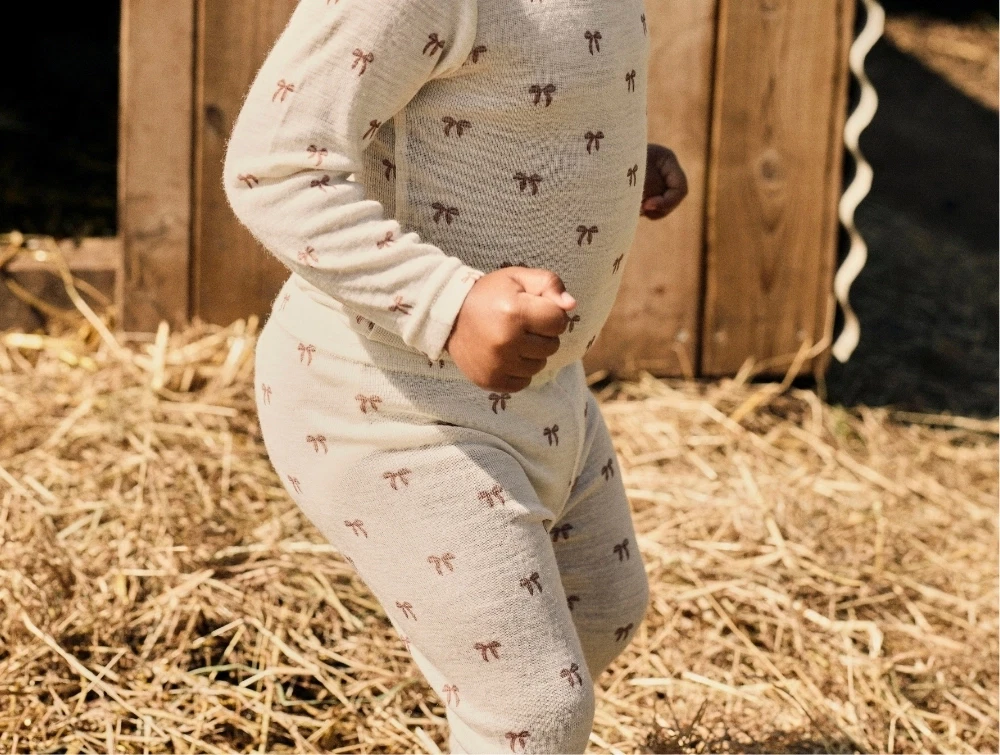 Mere information om Lil' Atelier leggings turtledove melange i uld/modal med sløjfeprint