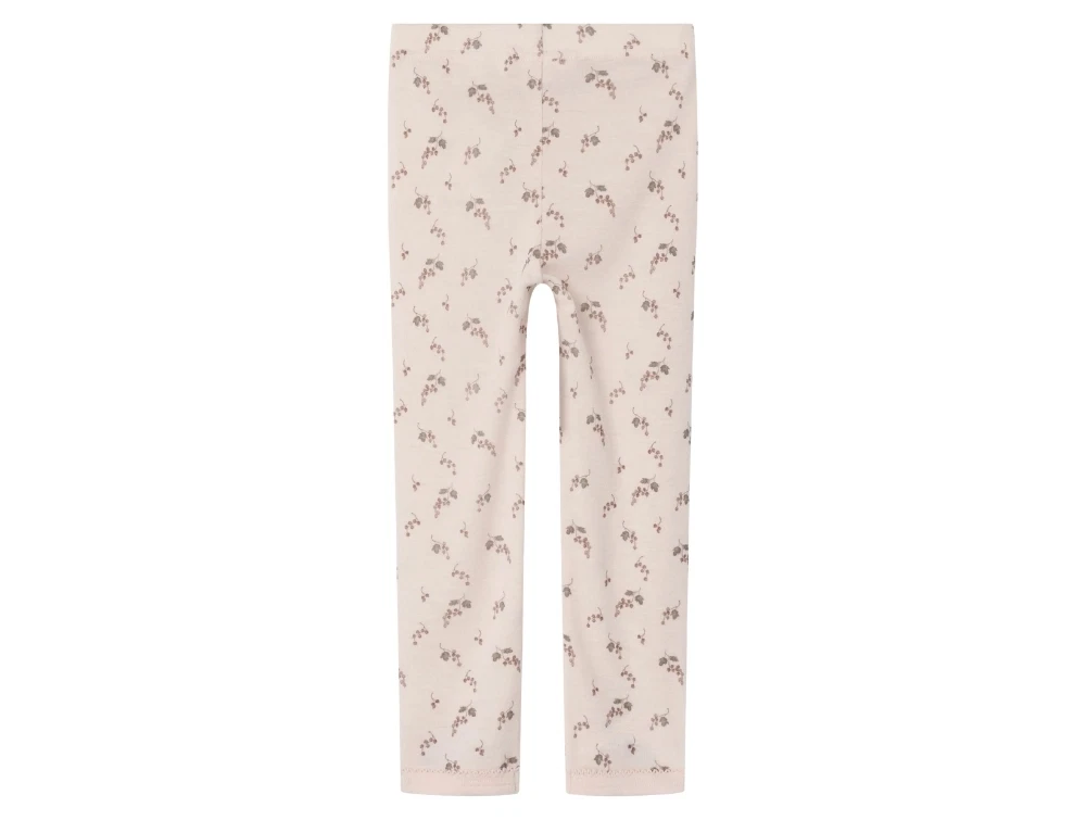 Lil\' Atelier leggings morganite berry i merinould med bærprintBarn iklædt Lil\' Atelier leggings i morganite berry uld til børnDetalje af Lil\' Atelier leggings i morganite berry uldBagside af Lil\' Atelier leggings i morganite berry uld