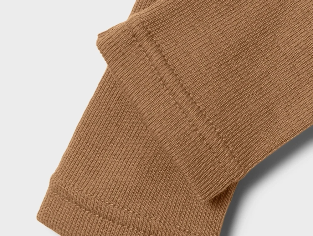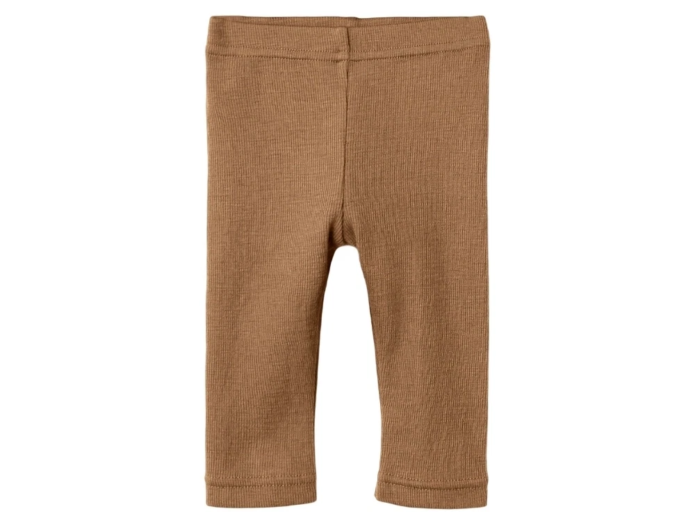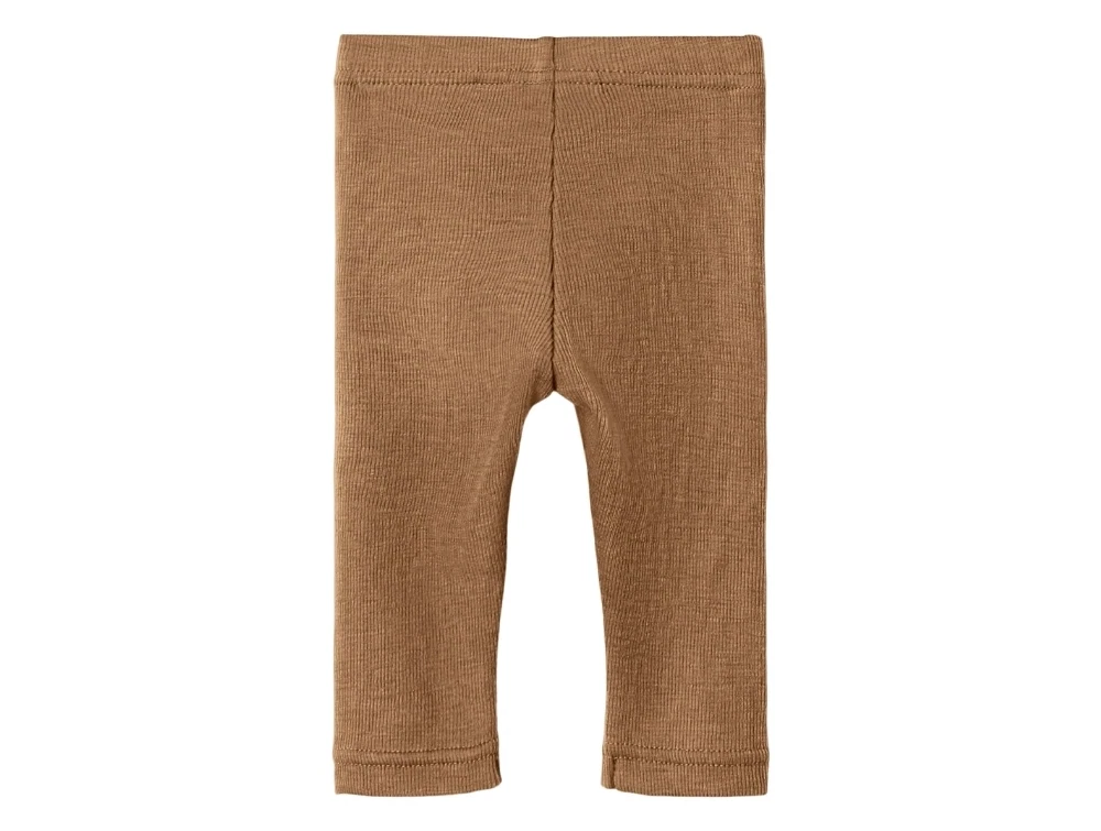Lil\' Atelier leggings tigers eye i merinouldBarn iklædt Lil\' Atelier leggings i tigers eye uld til babyDetalje af Lil\' Atelier leggings i tigers eye uldBagside af Lil\' Atelier leggings i tigers eye uld