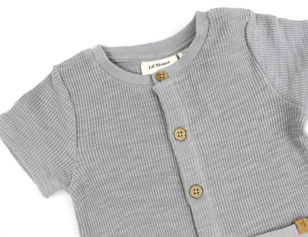 Dragt med korte ærmer og ben i farven limestone fra Lil' Atelier.