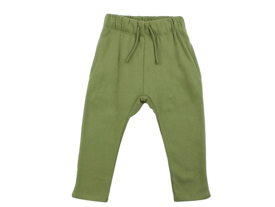 Sweatbukser i økologisk bomuld i farven loden green fra Lil' Atelier.