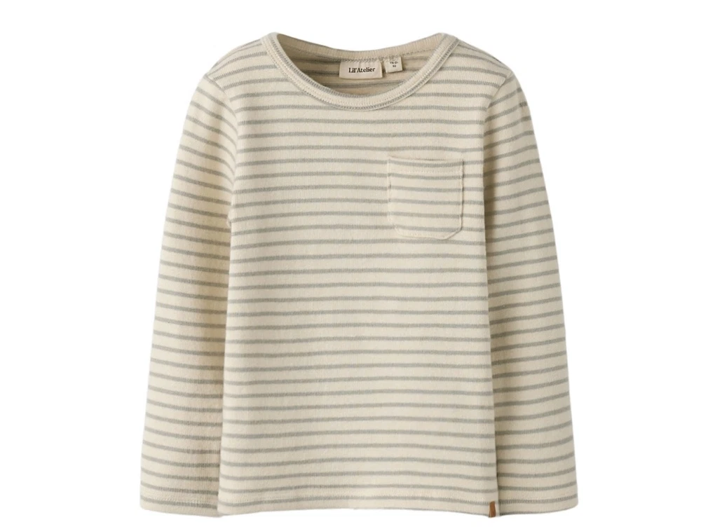 Lil' Atelier MINI top turtledove med grå striber og brystlomme