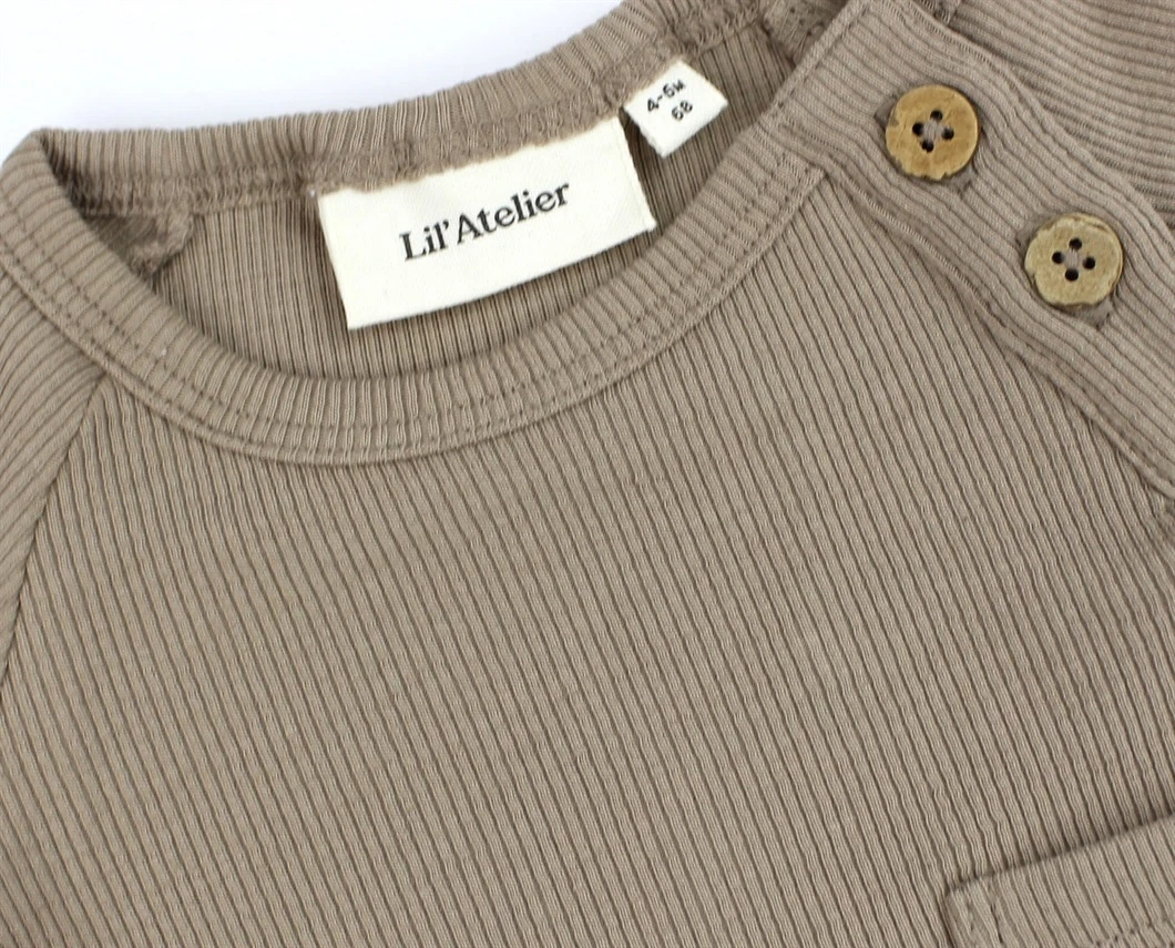 Kortærmet body i farven mocha meringue med lille brystlomme fra Lil' Atelier.