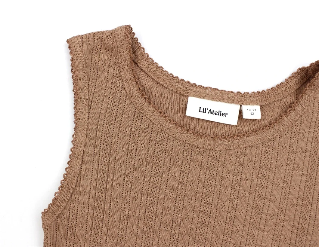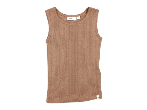 Ærmeløs top med hulmønster i farven mocha mousse fra Lil' Atelier.