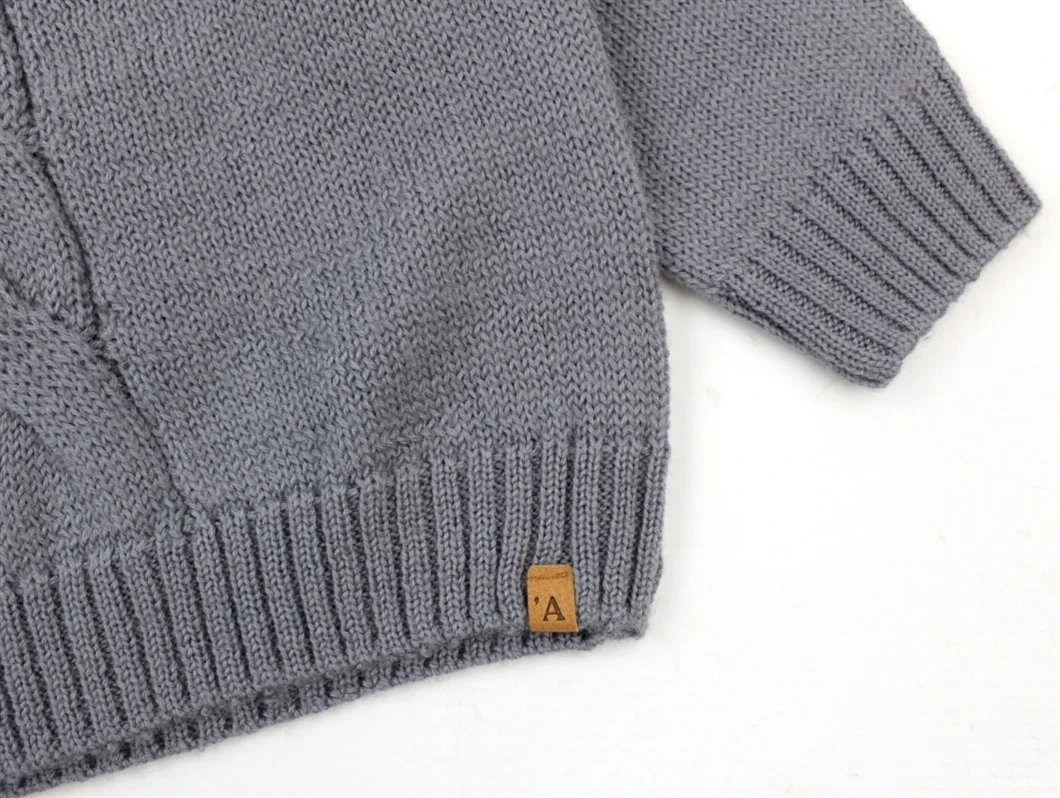 Sweater i det blødeste merinould med kabelstrik i farven monument melange fra Lil' Atelier.
