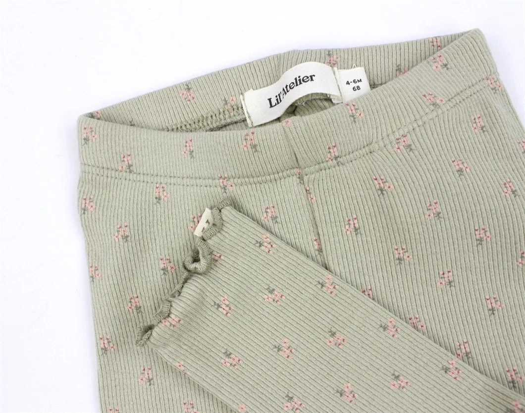 Sød legging i farven moss gray med blomsterprint fra Lil' Atelier.