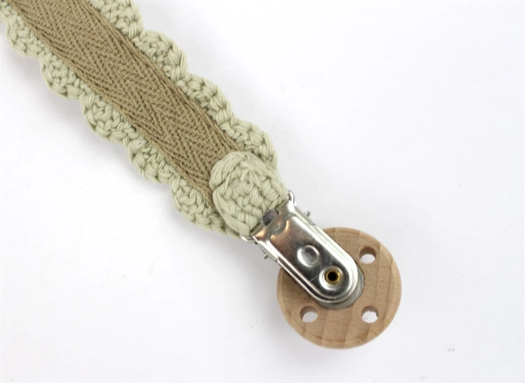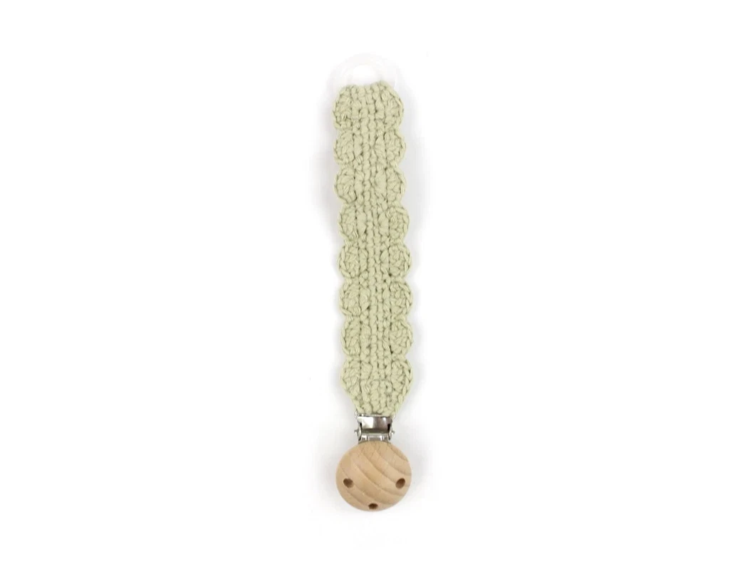 Hæklet suttesnor i farven moss gray fra Lil' Atelier.
