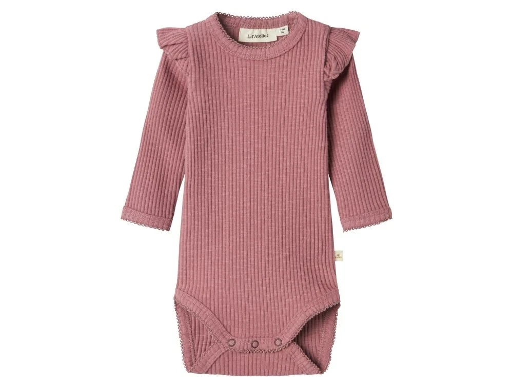 Body i farven nostalgia rose fra Lil' Atelier. Produceret i 97% økologisk bomuld og 3% elastan.