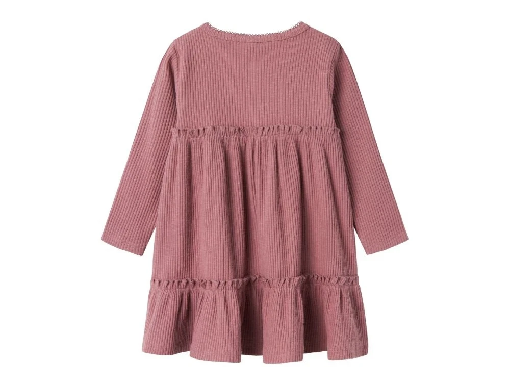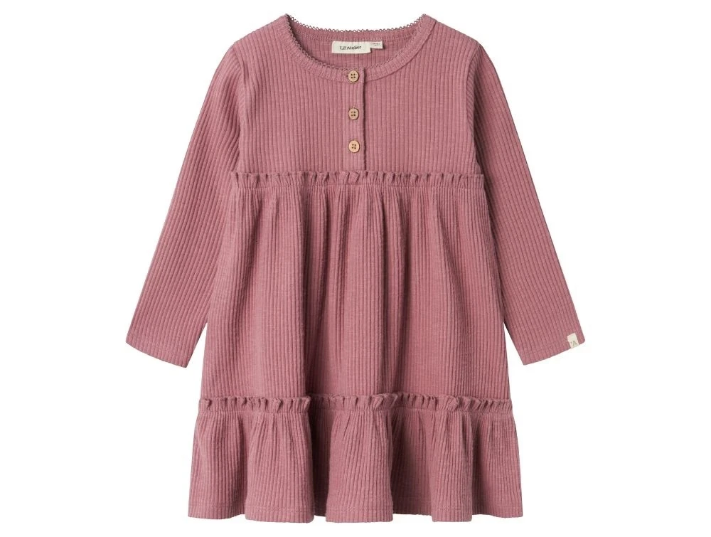Kjole i farven nostalgia rose fra Lil' Atelier. Produceret i 97% økologisk bomuld og 3% elastan.