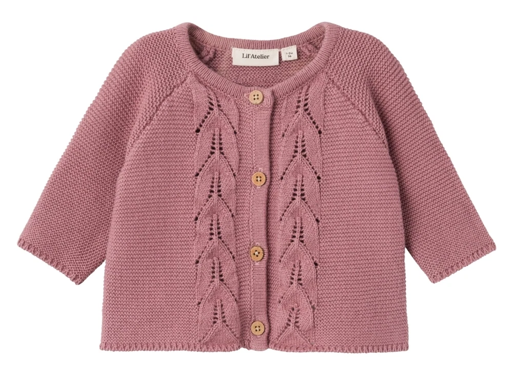 Strikcardigan i farven nostalgia rose fra Lil' Atelier.