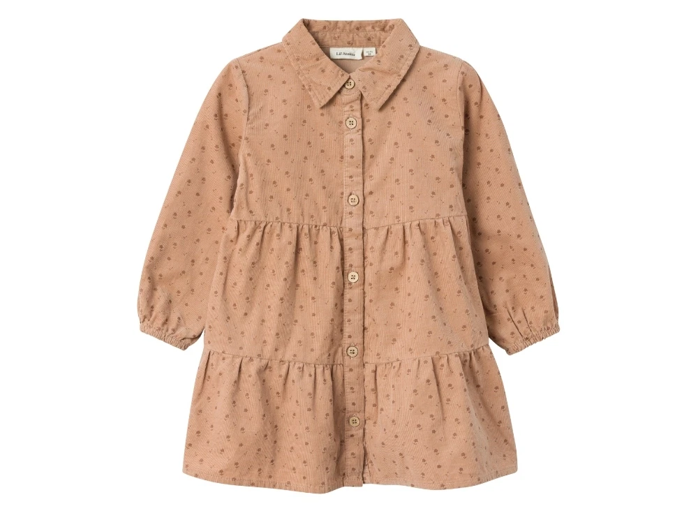 Kjole i farven nougat med blomsterprint fra Lil' Atelier.