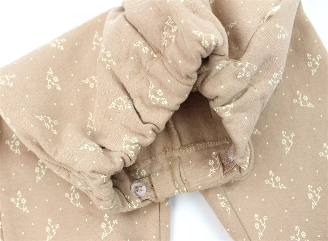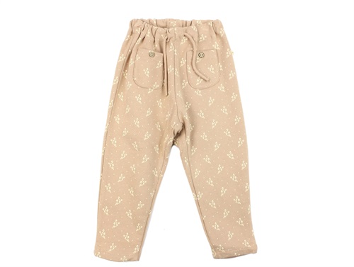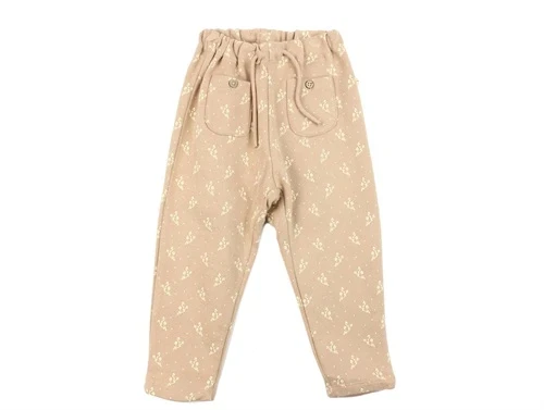 Sweatbukser i økologisk bomuld i farven nougat med blomsterprint fra Lil' Atelier.