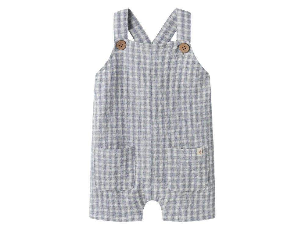 Mere information om Lil' Atelier overalls i råhvid med blå tern