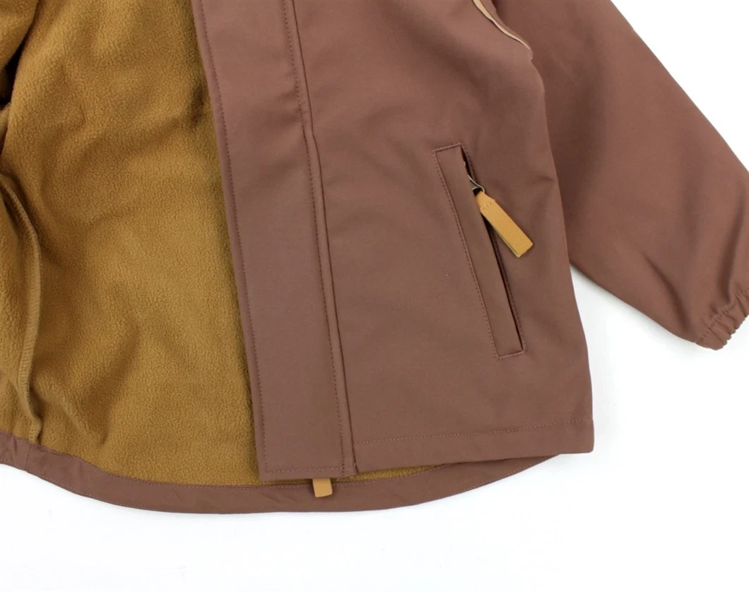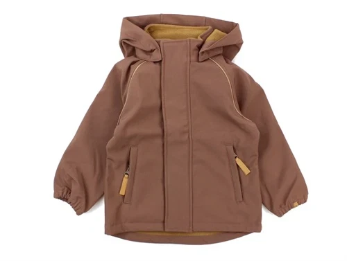 Overgangsjakke i farven myristica fra Lil' Atelier. Jakken har en aftagelige hætte med trykknapper.