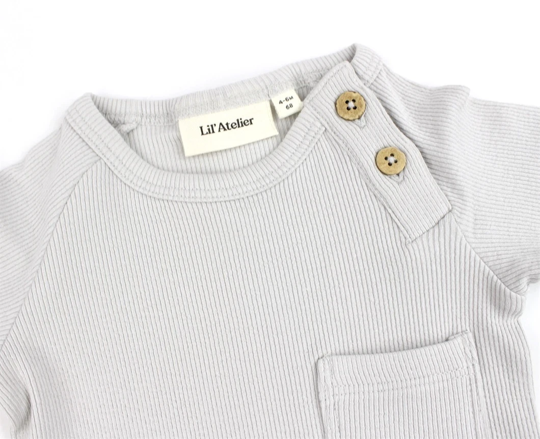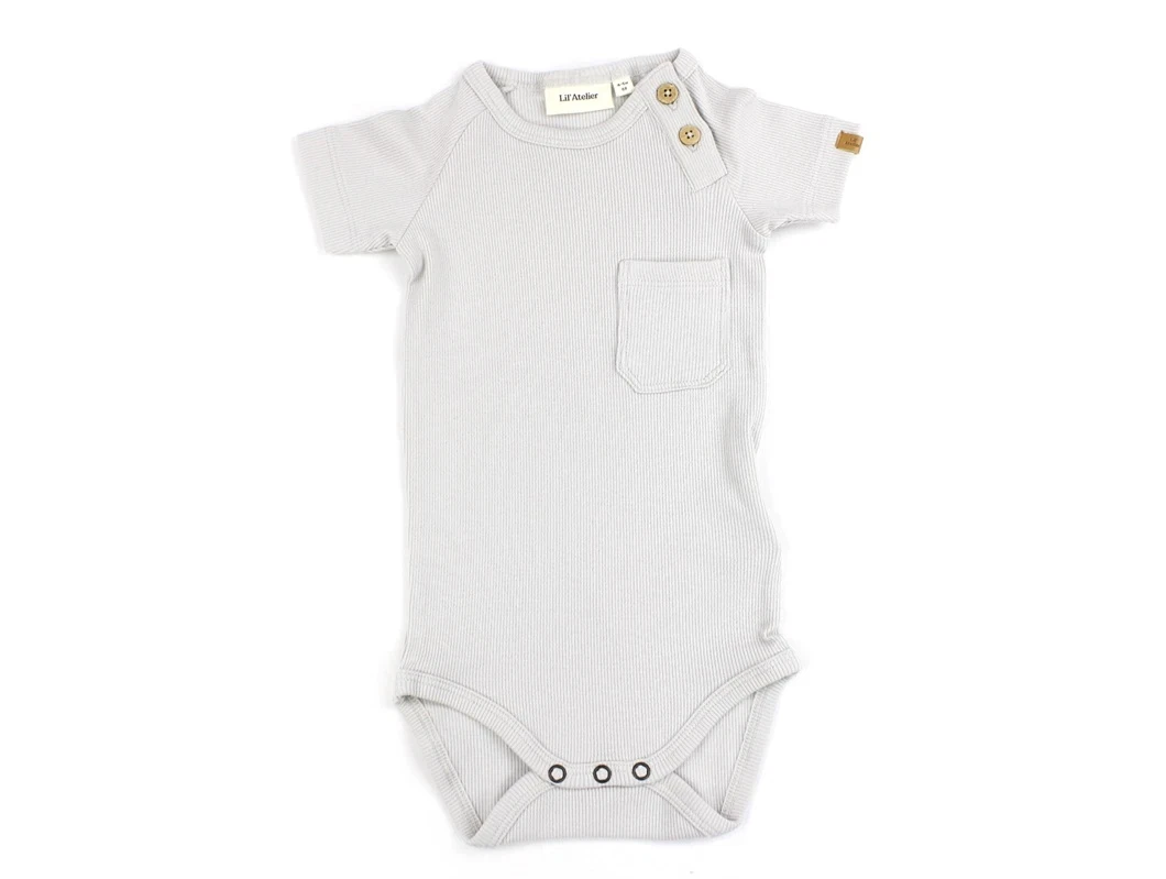 Kortærmet body i farven oyster mushroom med lille brystlomme fra Lil' Atelier.
