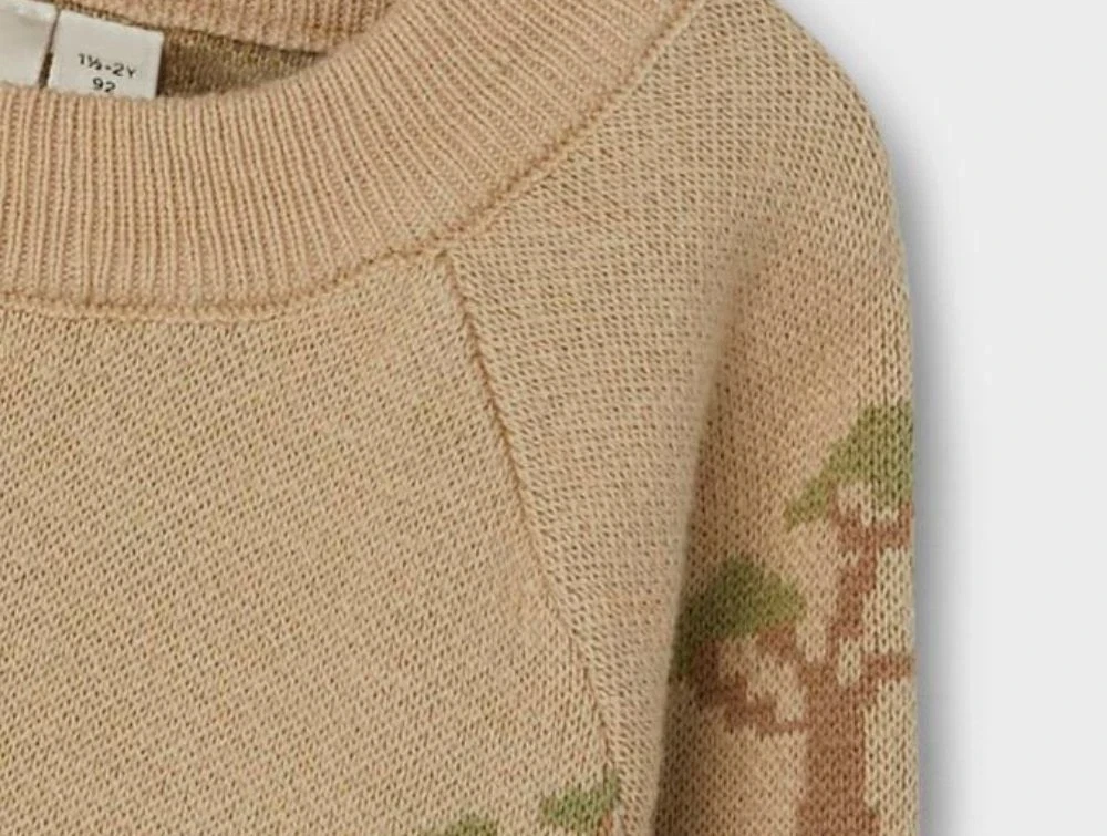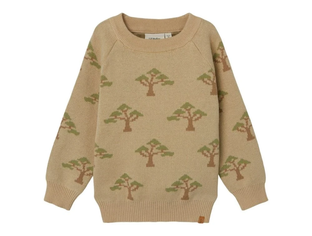 Strikbluse i farven pebble melange med træer fra Lil' Atelier.