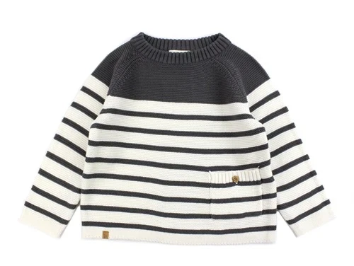 Striktrøje med striber i farven pewter fra Lil' Atelier.