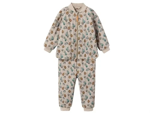 Termosæt med fleecefor i farven pure cashmere med print fra Lil' Atelier.