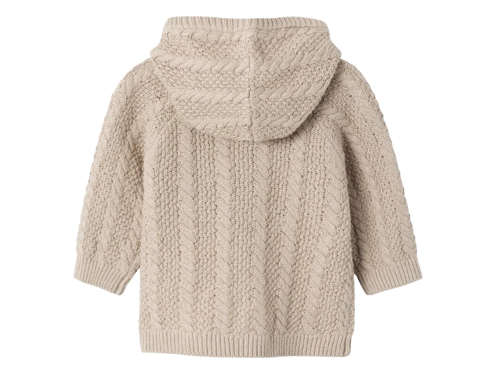 Babycardigan i farven pure cashmere med hætte og knapper fra Lil' Atelier.