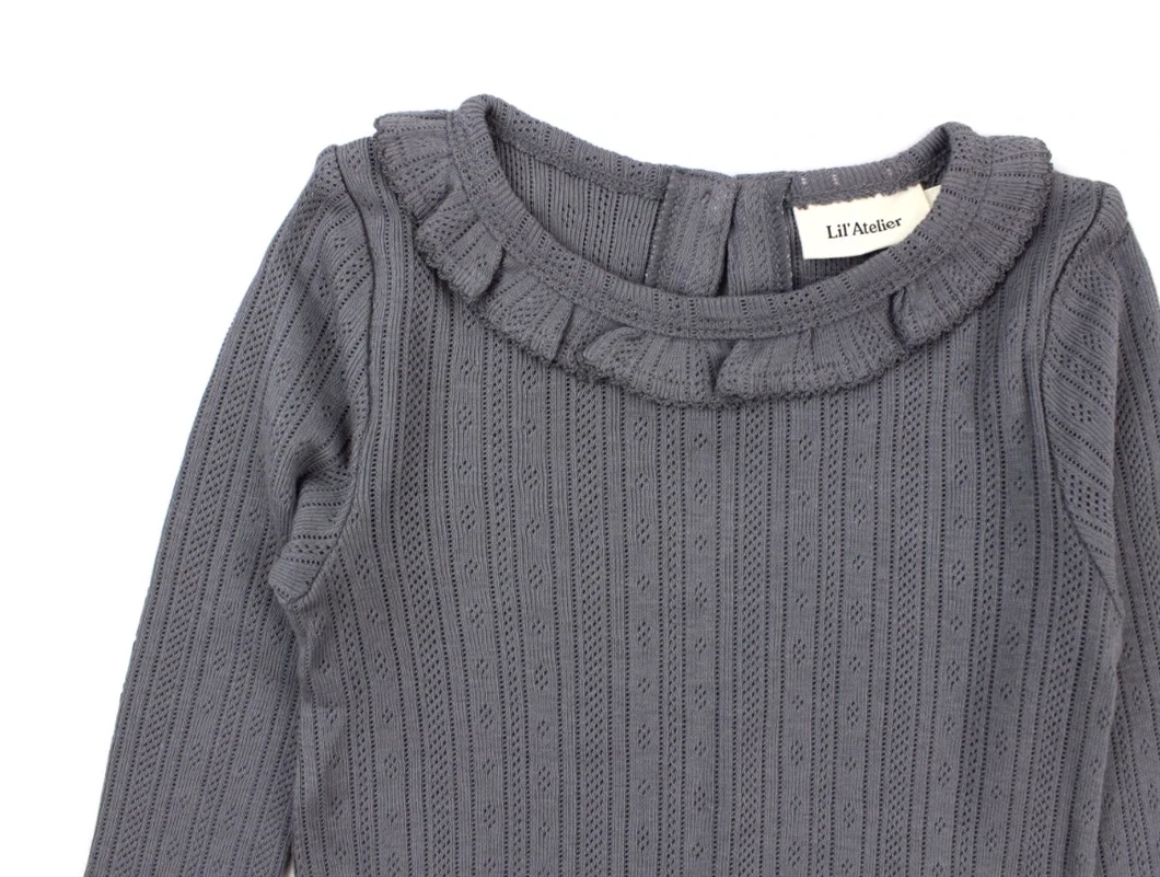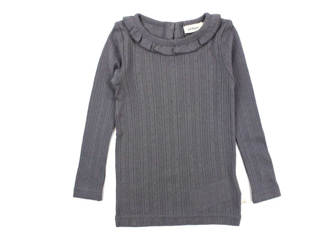 Langærmet top med hulmønster og flæsekrave i farven quiet shade fra Lil' Atelier.
