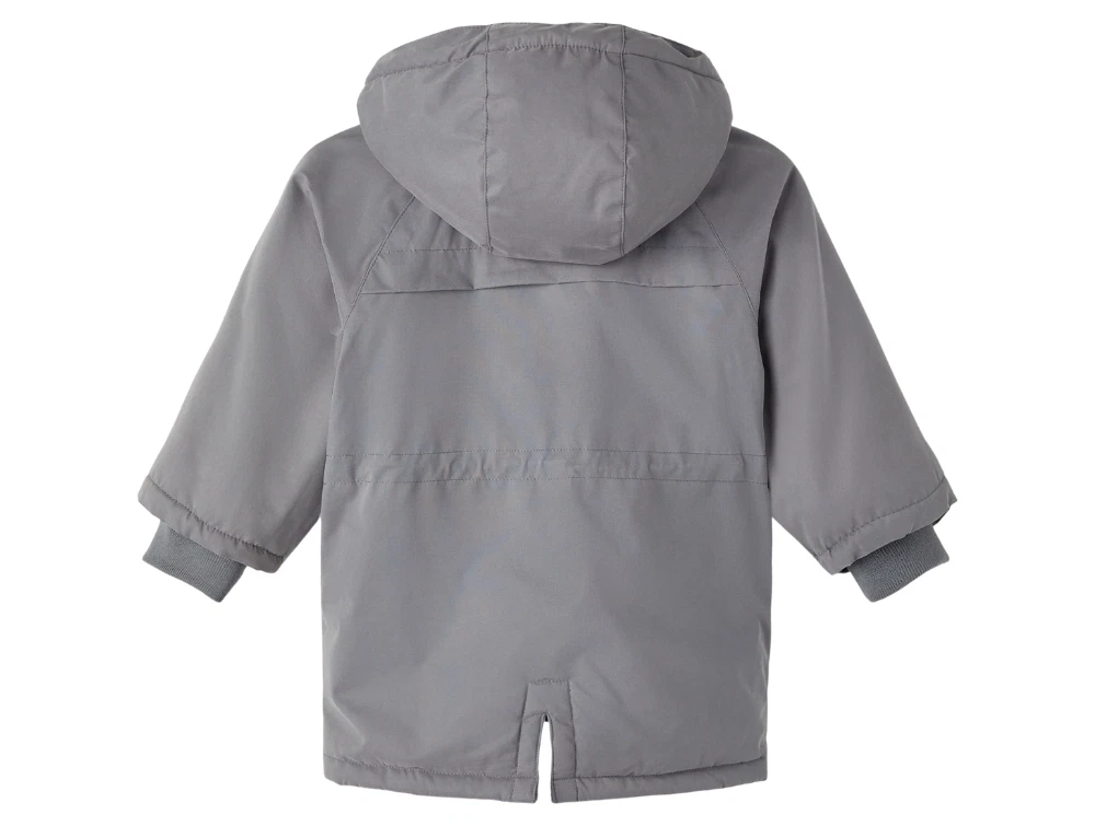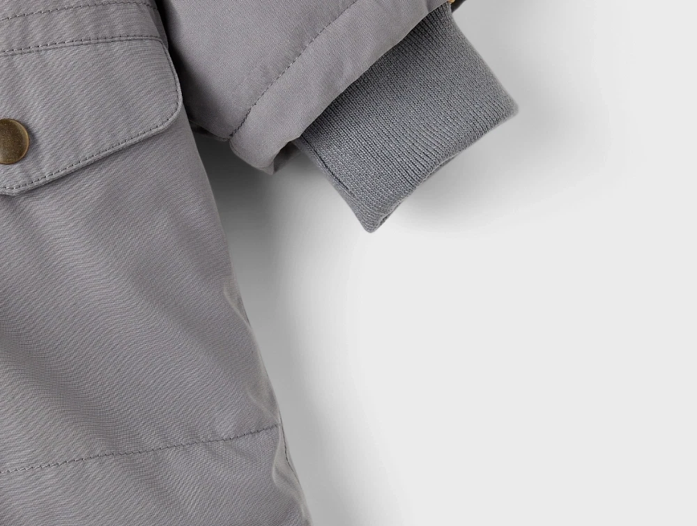 Vinterjakke i farven quiet shade fra Lil' Atelier. Jakken har en aftagelig hætte med trykknapper.