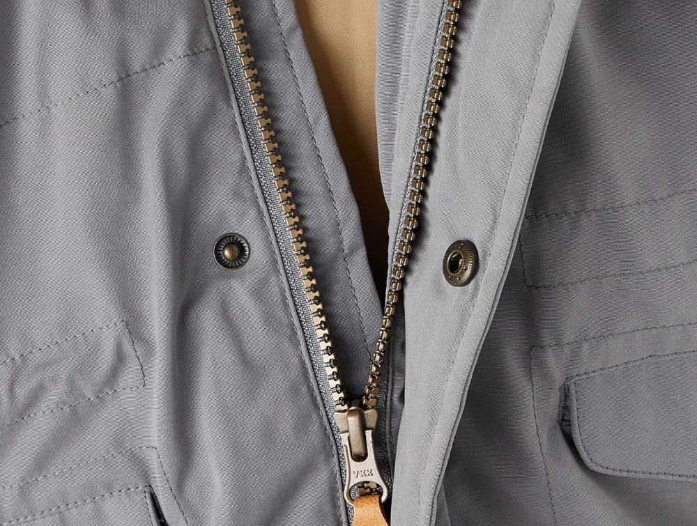 Jakken lukkes med lynlås og trykknapper. Desuden har jakken to lommer med trykknap samt to pyntelommer ved bryst.