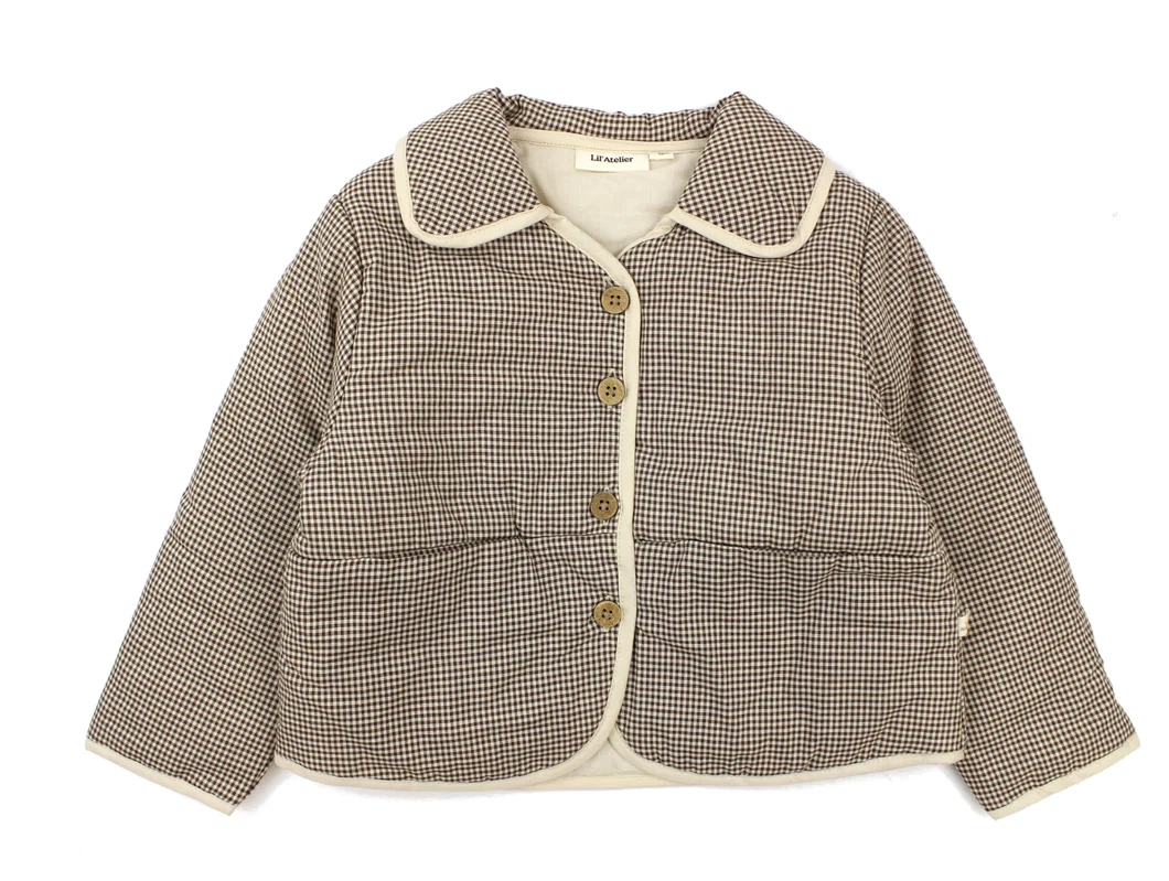 Lille blød jakke i farven rocky road med tern fra Lil' Atelier.