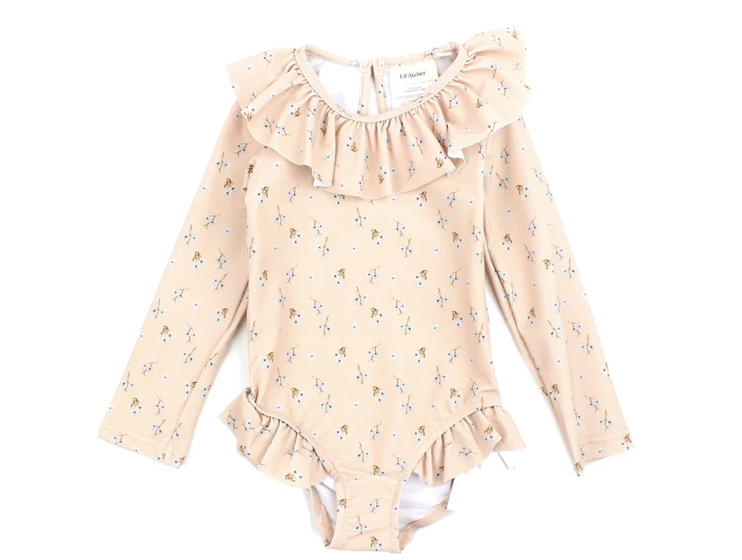 Badedragt i farven rose dust med blomsterprint fra Lil' Atelier.