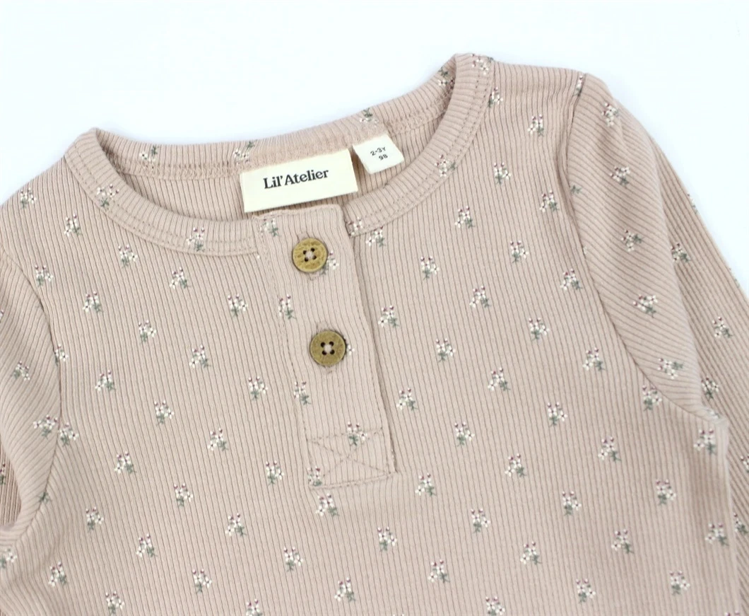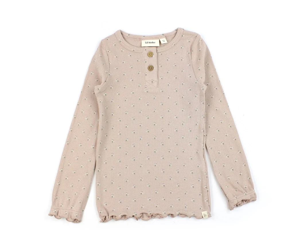 Langærmet top i farven rose dust med blomster og to knapper fra Lil' Atelier.