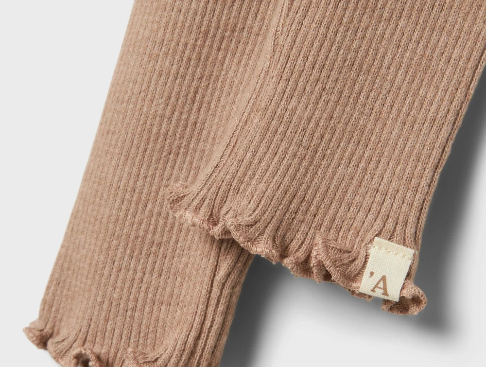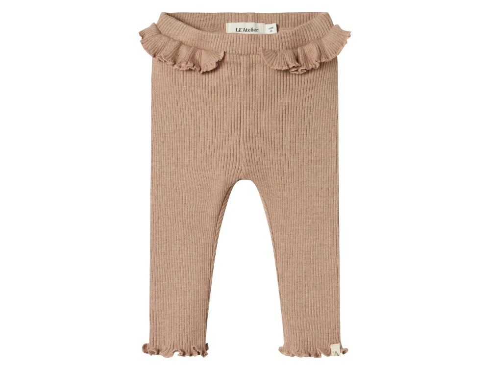 Leggings i farven rugby tan med flæser fra Lil' Atelier.