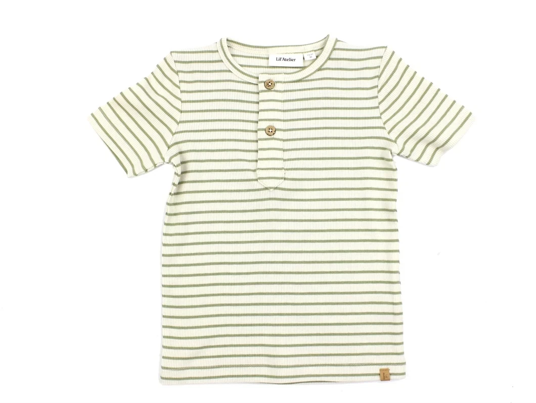 Stribet t-shirt med korte ærmer i farven sage fra Lil' Atelier.