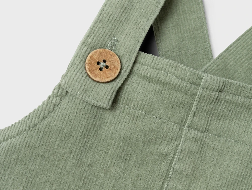 Overalls i fløjl i farven seagrass fra Lil' Atelier.