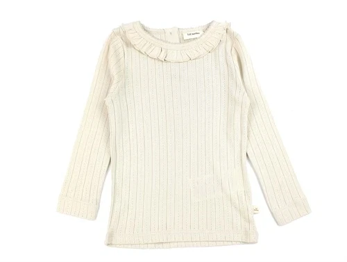 Langærmet top med hulmønster og flæsekrave i farven sheer bliss fra Lil' Atelier.