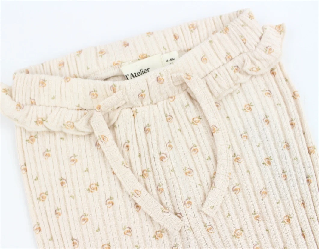 Legging med flæsekant i farven shell med blomsterprint fra Lil' Atelier.