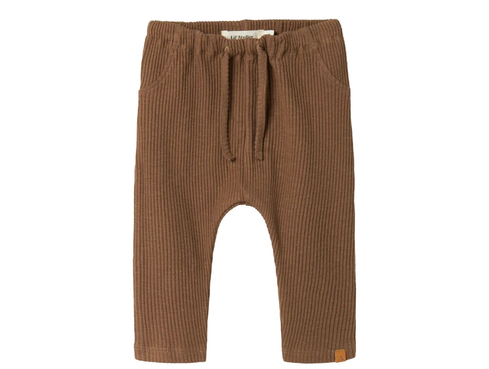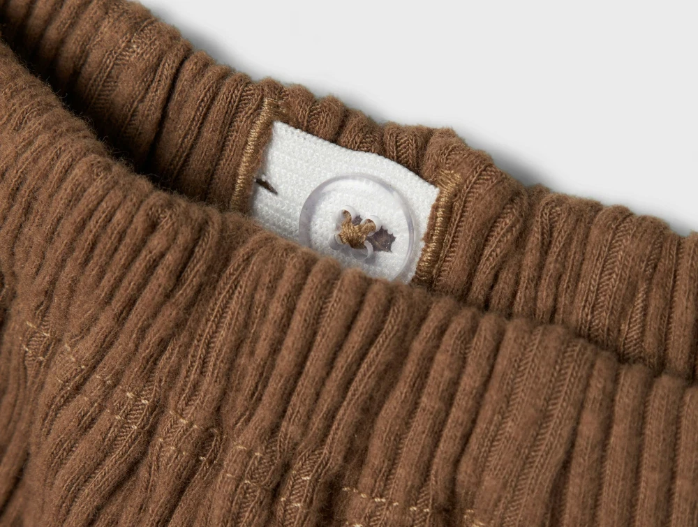 Bløde bukser i farven shitake fra Lil' Atelier.
