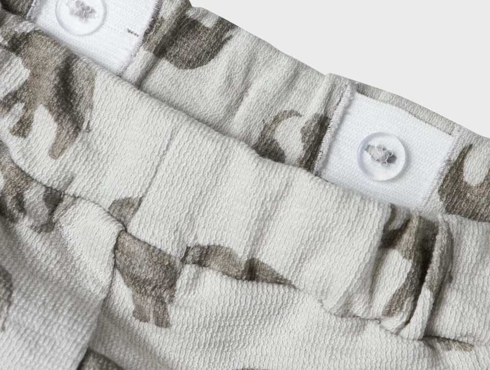 lil\' atelier shorts i lyseblå med elefantprint og snøre i taljen, set forfranærbillede af justerbar elastik i lil\' atelier shorts med elefantprint