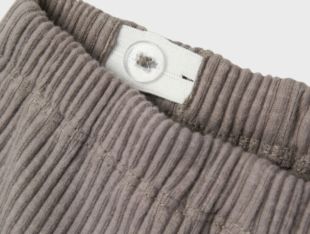 Bukser i farven silent storm fra Lil' Atelier. Justerbar elastik i taljen. Produceret i 97% økologisk bomuld og 3% elastan.
