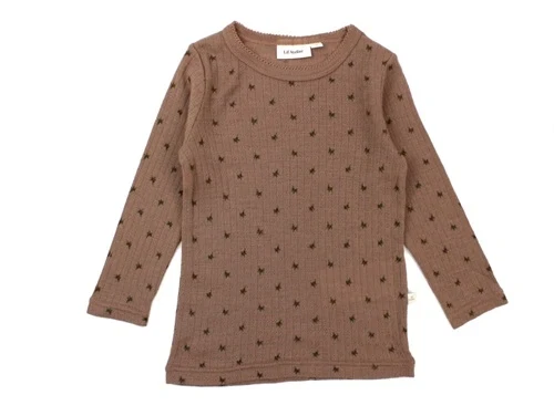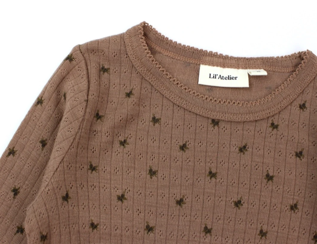 Uldbluse med den fineste hulmønster og print i farven sinopia fresco fra Lil' Atelier.
