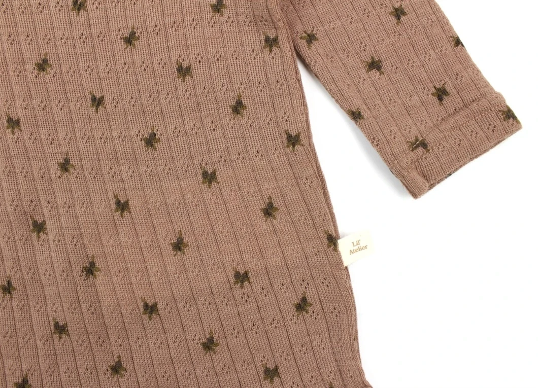 Uldbody med det fineste hulmønster og print i farven sinopia fresco fra Lil' Atelier.