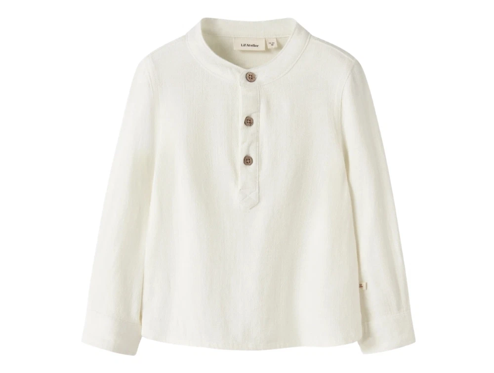Lil\' Atelier skjorte i rahvid nuance pa barn med lange aermerLil\' Atelier skjorte i rahvid nuance med kinakrave set forfraLil\' Atelier skjorte i rahvid nuance med knapper ved halsLil\' Atelier skjorte i rahvid nuance set bagfra
