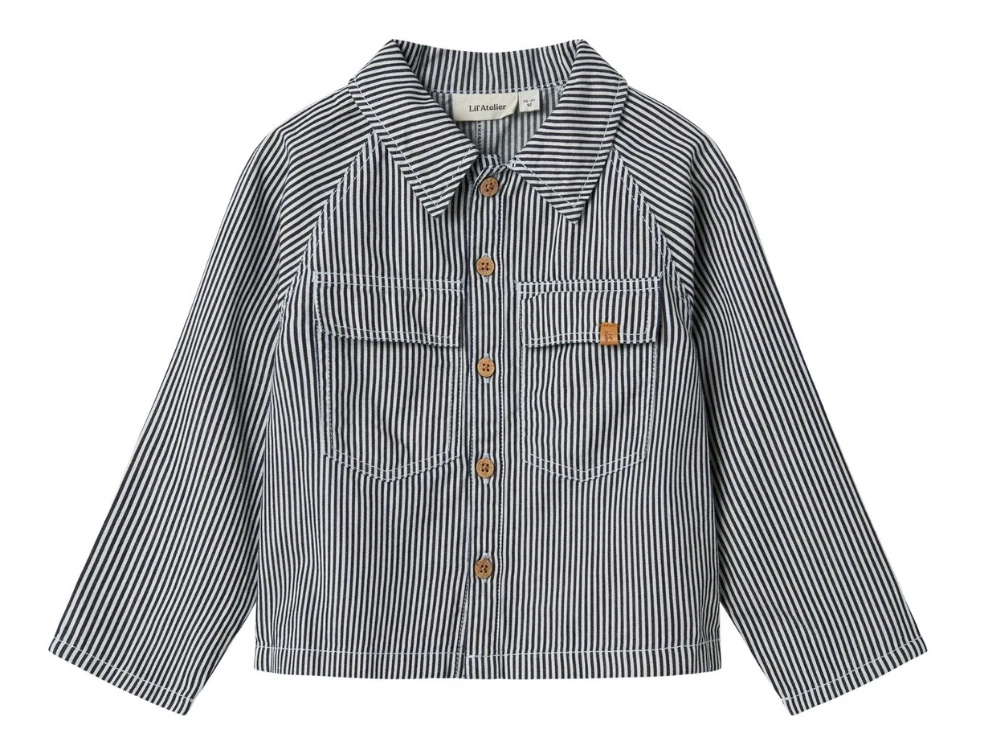 Stribet skjorte i mørkeblå nuance fra Lil' Atelier. En afslappet overskjorte i vævet twill, der giver et klassisk og tidløst udtryk. Perfekt til lag-på-lag over en t-shirt eller alene på milde dage.
